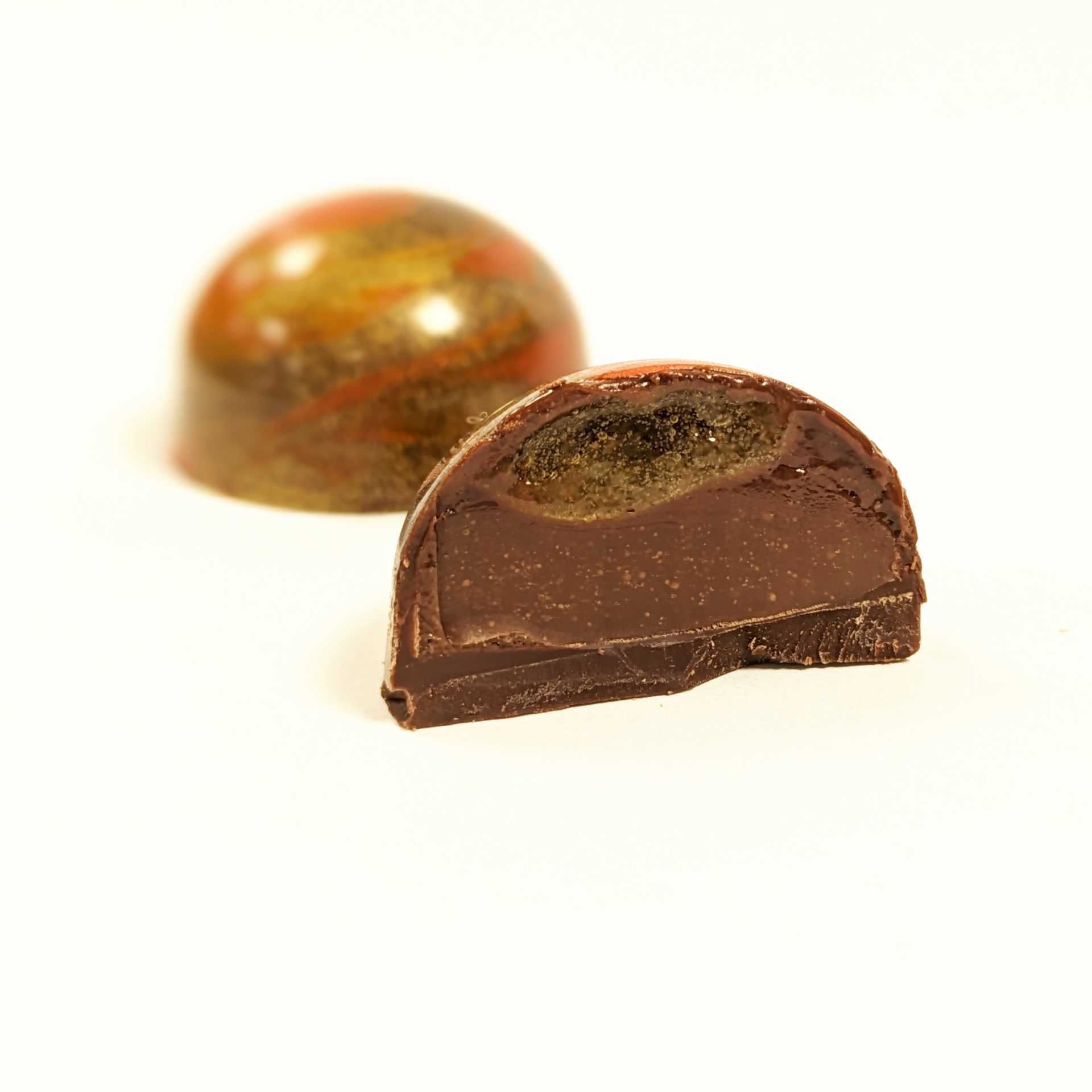 Innhold: Mørk sjokolade (minst 65% kakaoinnhold) (kakaobønner, kakaofett, sukker, soyalecithin), melkesjokolade (minst 40% kakaoinnhold) (kakaobønner, kakaosmør, helmelkspulver, sukker, soyalecithin), fløte, appelsin, invertsukker, glukose, pektin, sitronsyre.