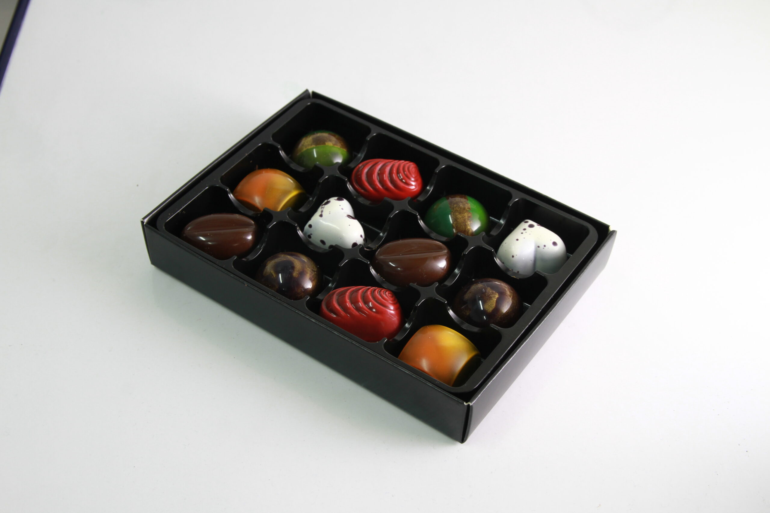Innhold: 12 biter assortert, håndlaget konfekt. 2 av hver smak – perfekt for å dele! Smaker kan variere fra eske til eske, avhengig av sesong, råvarer og utvalg. QR kode på esken for oversikt over smaker og innhold.