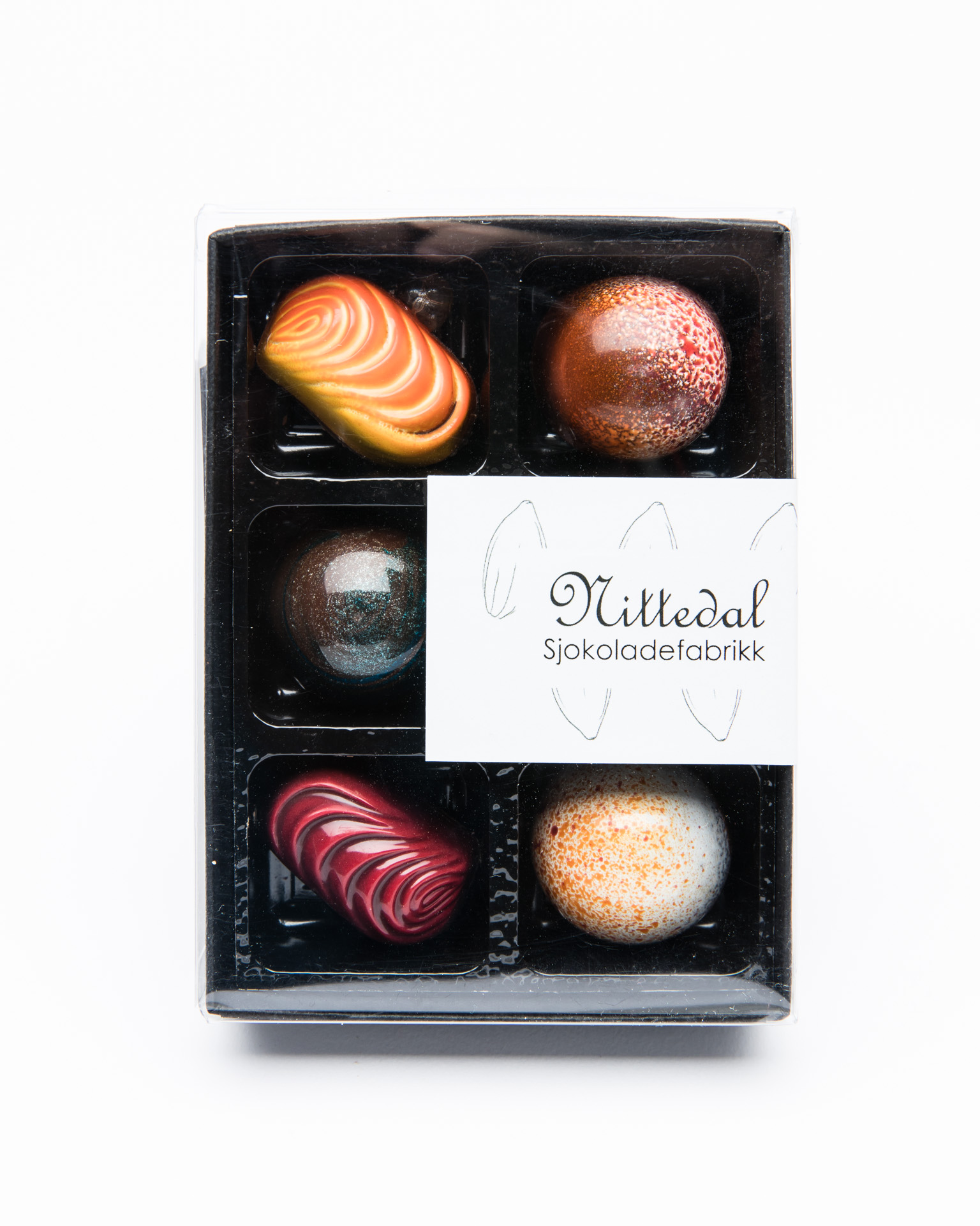 Tom konfekteske med rom til 6 biter. Ikke egnet for postsending.